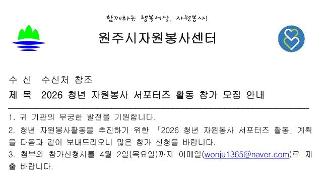 청년 자원봉사 서포터즈 활동 참가 모집 안내