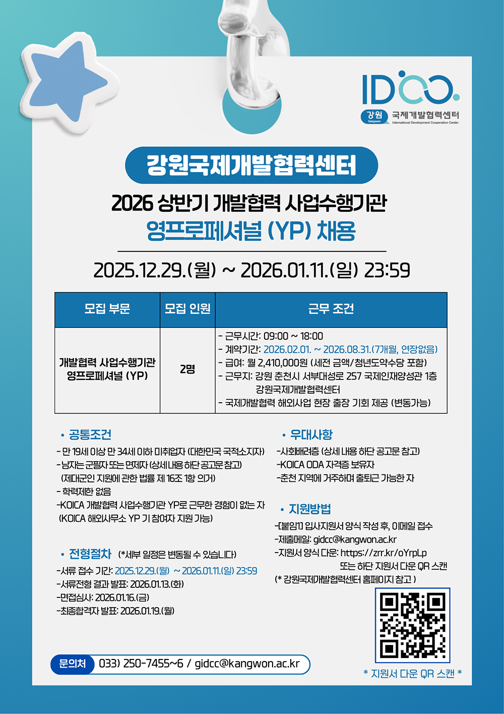 [강원국제개발협력센터] 2026년 상반기 개발협력 사업수행기관 영프로페셔널 (YP) 모집